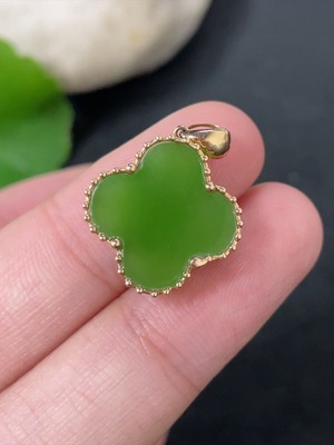 H37437929 Hetian Jade Jasper Inlaid Pendant Clover 18K Gold Total Weight Approx. 2.7g