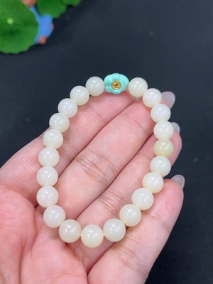 H40768581 Hetian Jade Bracelet, approx. 7.9mm, total weight about 23.1g, with non-Hetian Jade beads
