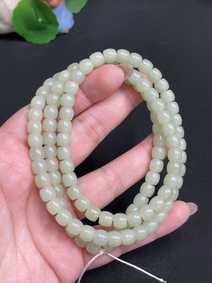 H36312023 Hetian Jade Bead Necklace, Approx. 6.8mm, Total Weight Approx. 62.5g