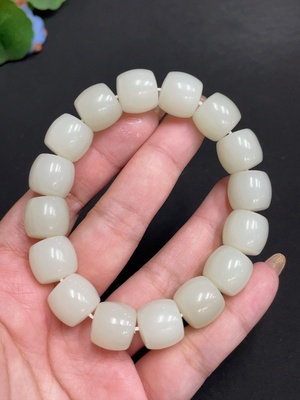 H31659412 Hetian Jade Bracelet Approx. 12.8 mm Beads Total Weight Approx. 65.4g