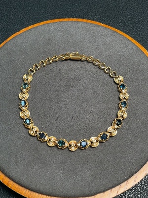 C33922202 Sapphire bracelet, color origin undetermined, accented with diamonds, no imprint, surface gold content approximately 75%, total item weight about 10.19 grams