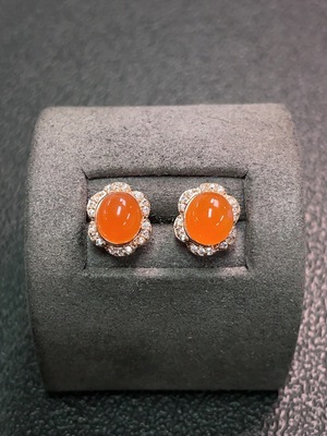 C34039432 South Red Agate Earrings Non-Gold Total Weight Approx. 2.24g Size 7.7*6.8mm