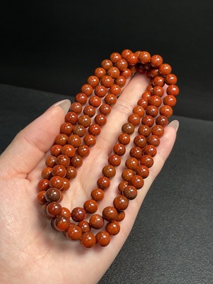 C29339690 Red Agate Beaded Necklace with Visible Organic Inclusions, Total Weight Approx. 65.39g, Bead Size 7.5mm