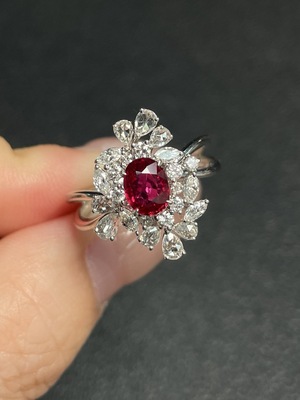 C35202173 Ruby Ring Set in 18K Gold with Diamond Accents, Total Weight Approximately 4.66g, Size 14, GRS Certificate: Unheated Pigeon Blood Red