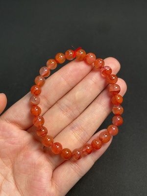 C39640977 Red Agate Bead Strand with Visible Organic Matter, Total Weight Approx. 10.88g, Size About 6.6mm