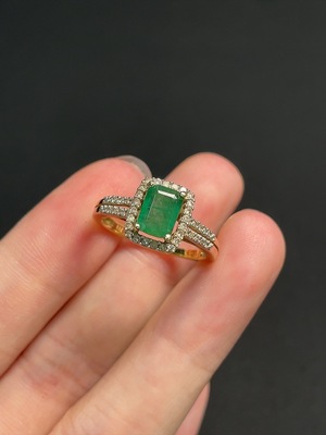C39595485 Emerald Inlaid Ring 58% Gold Content Size 15 Total Weight Approx. 2.65g Clarity Enhanced Non-Diamond