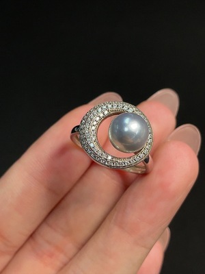 C40679046 Seawater Pearl Inlay Ring Non-Gold Setting Adjustable Size Approximately 8.6mm Total Weight About 3.95g Color Origin Undetermined