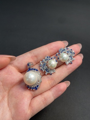 C34065767 18k seawater pearl earrings with undetermined color origin, total weight approximately 8.33g, size about 11.5mm