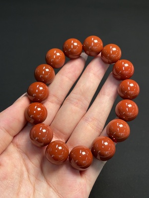 C39640324 Red Agate Bracelet with Visible Organic Matter, Total Weight Approx. 73.49g, Bead Size ~15.3mm