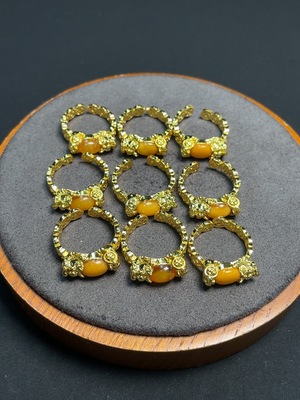 C40680363 Amber Beeswax Inlay Ring Non-Gold Inlaid Adjustable Total Weight About 26.58g