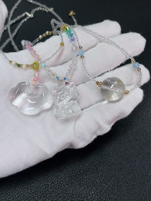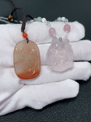 C40683731 Crystal Pendant with Non-Natural Chain + Red Agate Pendant Non-Gold, Total Weight Approx. 24.67g Including Rope and Chain, Sell as a Lot