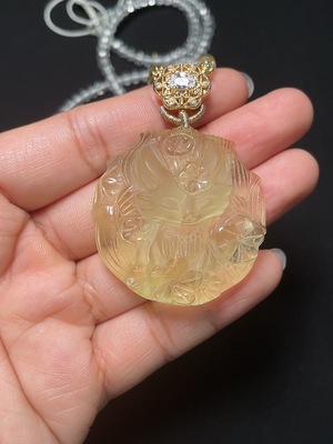 C39584478 Amber Beeswax Pendant with Hetian Jade, Total Weight Including Cord Approximately 47.76g, Mounting Stones May Not Be Natural