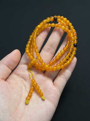 C38543958 Amber Beeswax Bead Strand with Partial Visible Repairs, Colorless Coating, Non-Natural Gemstone Considerations, Total Weight Approximately 9.7g, Approximately 5.2mm in Size