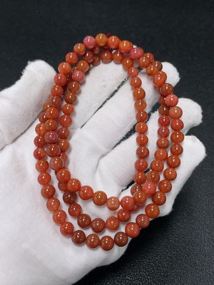 C40705190 South Red Agate Bead Strand with Visible Organic Matter, Total Weight Approximately 43.21g, Size About 6.7mm