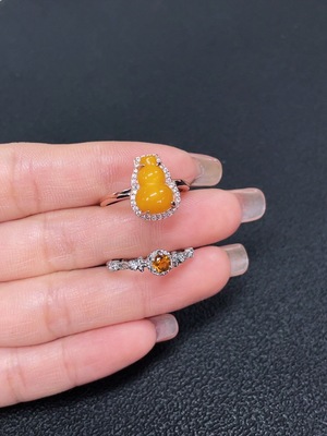 C39624320 Amber Beeswax + Crystal Ring Non-Gold Adjustable Total Weight Approx. 3.6g Sell as a Lot
