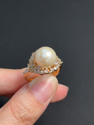 C39613869 Pearl Inlaid Ring Non-Gold Setting Adjustable Size Approximately 10.5mm Total Weight About 5.34g