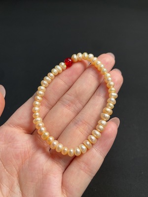 C35092991 Pearl Bracelet with Non-Natural Gemstones + Red Agate Bracelet with Non-Natural Gemstones, Visible Organic Matter, Non-Gold, Total Weight Approx. 48.05g, Sell as a Lot