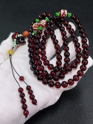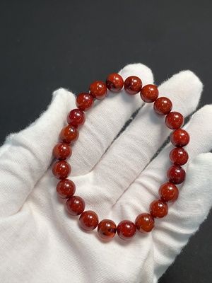 C39642447 Red Agate Bracelet, approx. 11.6mm, total weight approx. 29.91g, visible organic matter, with amber