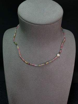 C39624106 Tourmaline Bead Necklace with Pearl, Visible Organic Matter, Non-Gold Product Total Weight Approx. 4.8g, Bead Size 2.6mm