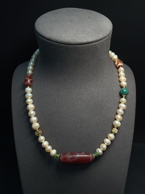 C38543318 Pearl bead necklace with non-natural gemstones, non-gold, total weight approximately 53.26g, size about 9mm
