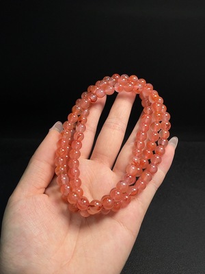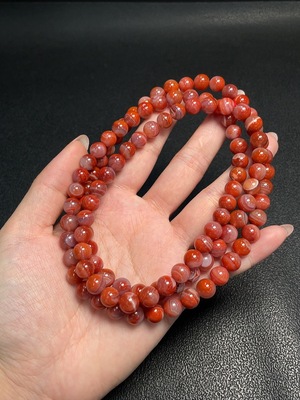C33871459 South Red Agate Bead Necklace with Visible Organic Matter, Total Weight Approx. 79.5g, Bead Size 8.3mm