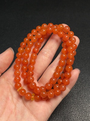 C36274644 Red Agate Bead Necklace with Visible Organic Matter, Total Weight Approx. 42.05g, 7.1mm Beads, Paired with Amber