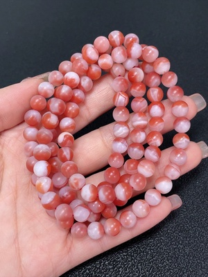 C39558738 South Red Agate Bead Strand with Visible Organic Matter, Total Weight Approx. 54.33g, Size About 7.2mm