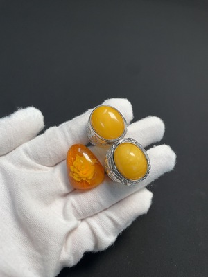 C39642703 Amber Beeswax Inlaid Ring + Inlaid Piece Non-Gold Inlaid Total Weight Approx. 22.98g