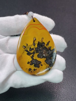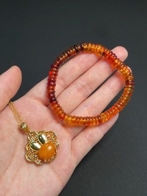 C38544915 Amber and beeswax inlaid pendant + bracelet, non-gold inlaid, total weight including chain approx. 13.03g