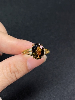 C36271703 18k Tourmaline Ring with Diamond Accents, Total Weight Approx. 2.49g, Size 14