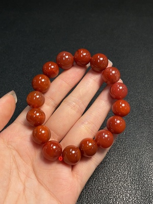 C35096150 Red Agate Bracelet with Visible Organic Inclusions, Total Weight Approx. 32.78g, Size About 11.2mm