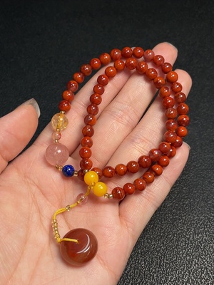 C26985988 Red Agate Bracelet, 99% gold content in beads, non-gold remainder, visible organic matter, total weight approx. 23.4g, size approx. 9.1mm