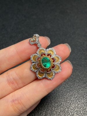 C36303084 Emerald Pendant Clarity Enhanced 74% Gold Content Diamond Accented Total Weight Approx. 6.56g