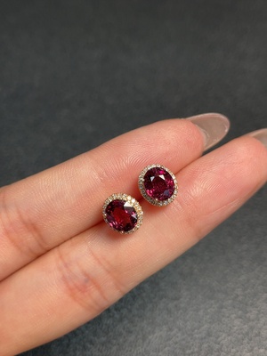 C33921641 Garnet earrings with diamond accents, 18K gold, total weight approx. 2.09g