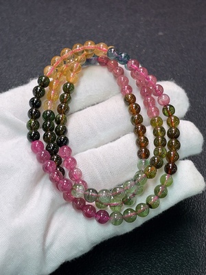 C36271909 Tourmaline bead strand with visible organic matter, total weight approx. 24.88g, 5.2mm beads (mixed stones)