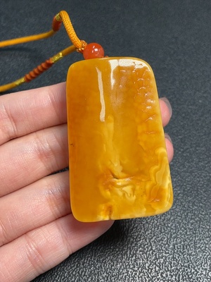 C35096065 Amber Beeswax Pendant Necklace Non-Gold Chain 18K Gold Pendant Total Weight Approx. 2.56g Including Chain
