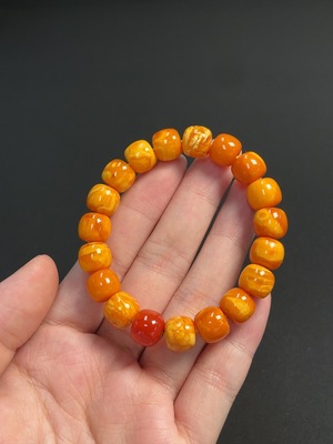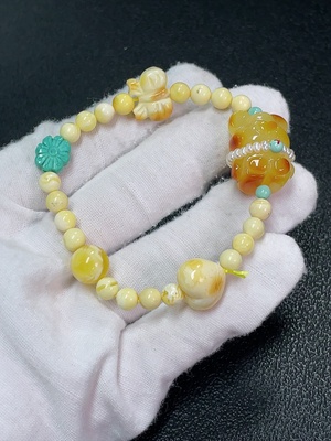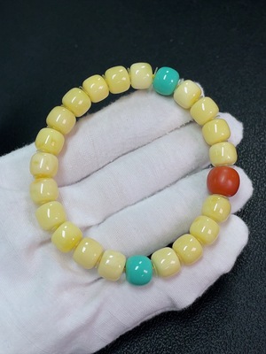 C37448525 Amber Beeswax Bracelet with Non-Natural Gemstones, Total Weight Approx. 22.12g (Including String)