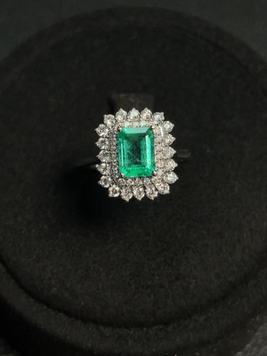 C35181595 Emerald Ring, Clarity Enhanced, 73% Gold Content, Diamond Accents, Total Weight Approx. 3.39g, Size 14