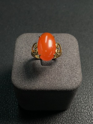 C24820482 Red Agate Inlaid Ring 18k Gold Size 13 Total Weight Approx. 4.73g