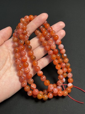 C39597391 South Red Agate Bead Strand, approx. 8.7mm, total weight approx. 97.58g, visible organic matter