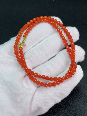 C36302208 South Red Agate Bead Necklace with Visible Organic Matter, Total Weight Approximately 132.08g, Bead Size About 9.5mm