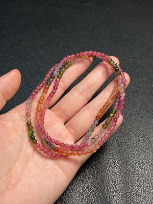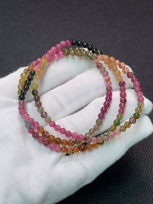 C35183986 Tourmaline bead strand with other mineral components, visible organic matter, total weight approximately 11.78g, size about 3.7mm