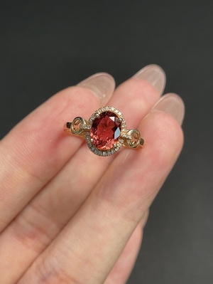 C40711790 18K Tourmaline Ring with Diamond Accents, Total Weight Approx. 1.93g, Size 15