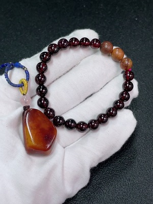 C40684495 Amber Beeswax with Crystal, Chain Considered Non-Natural, Garnet Pendant + Bracelet, Total Weight Including Cord Approximately 21g