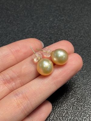 C37386470 18k seawater pearl earrings, color origin undetermined, total weight approximately 3.17g, size about 9.9mm