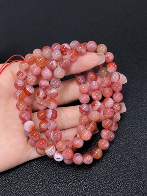 C40706717 Red Agate Bead Strand with Visible Organic Matter, Total Weight Approx. 53.49g, Size 7mm