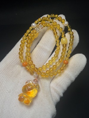 C39660412 Amber Beeswax Pendant with Pearls and Crystals, Colorless Film Coated, Non-Gold, Non-Natural Accent Stones (White Faceted Beaded Parts)