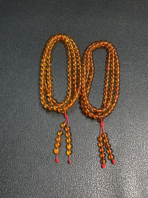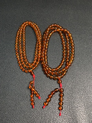 C36274092 Amber Beeswax Bead Strand with Partial Visible Repairs, Total Weight Approximately 29.8g, Size About 7.3mm