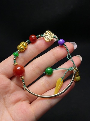 C38499276 Amber Beeswax Bracelet 9.9mm Total Weight Approx.16.35g with Southern Red Agate