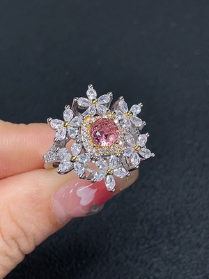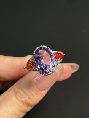 C40678987 Crystal Inlaid Ring, Non-Gold Setting, Adjustable, Total Weight Approx. 4.5g, Accent Stones May Be Non-Natural